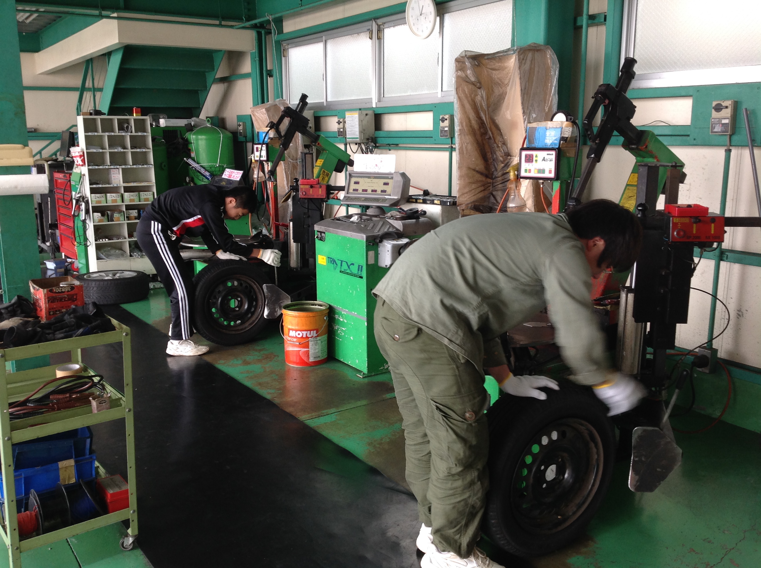 体験していただいた内容としては「タイヤ交換」「タイヤの脱着」「オイル交換」といろいろ