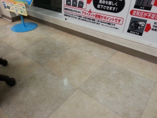 今日は、お店の床をワックスがけしました