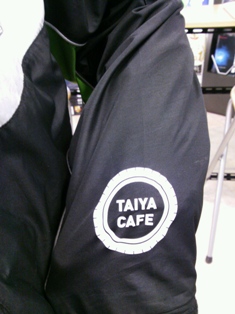 しかもこのジャンパー、左手の時計を彷彿させる位置にしっかりと「タイヤカフェ」の烙印が
