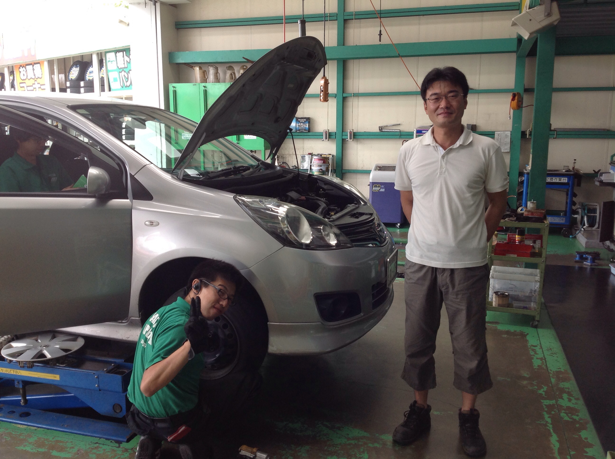 オイル交換の作業を担当していたスタッフと一緒に写真を撮ってもらおうと思ってたんですが・・・