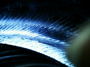 写真はかなり見にくくなっておりますが、車搭載のパンク修理剤を使った後のタイヤの写真です。