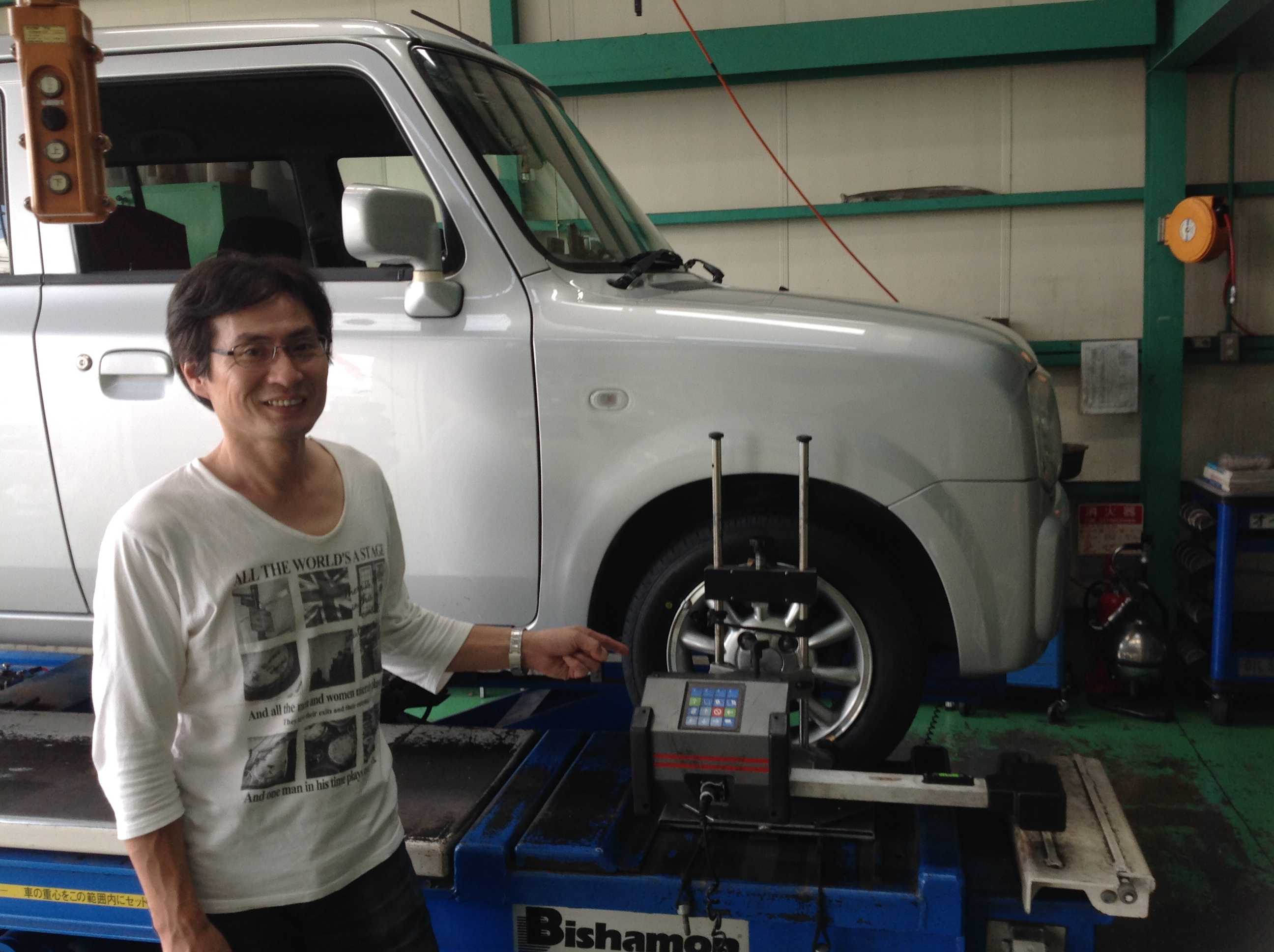 本日はタイヤの交換をさせていただいてますemoji一緒に車軸の調整もしていただきました。