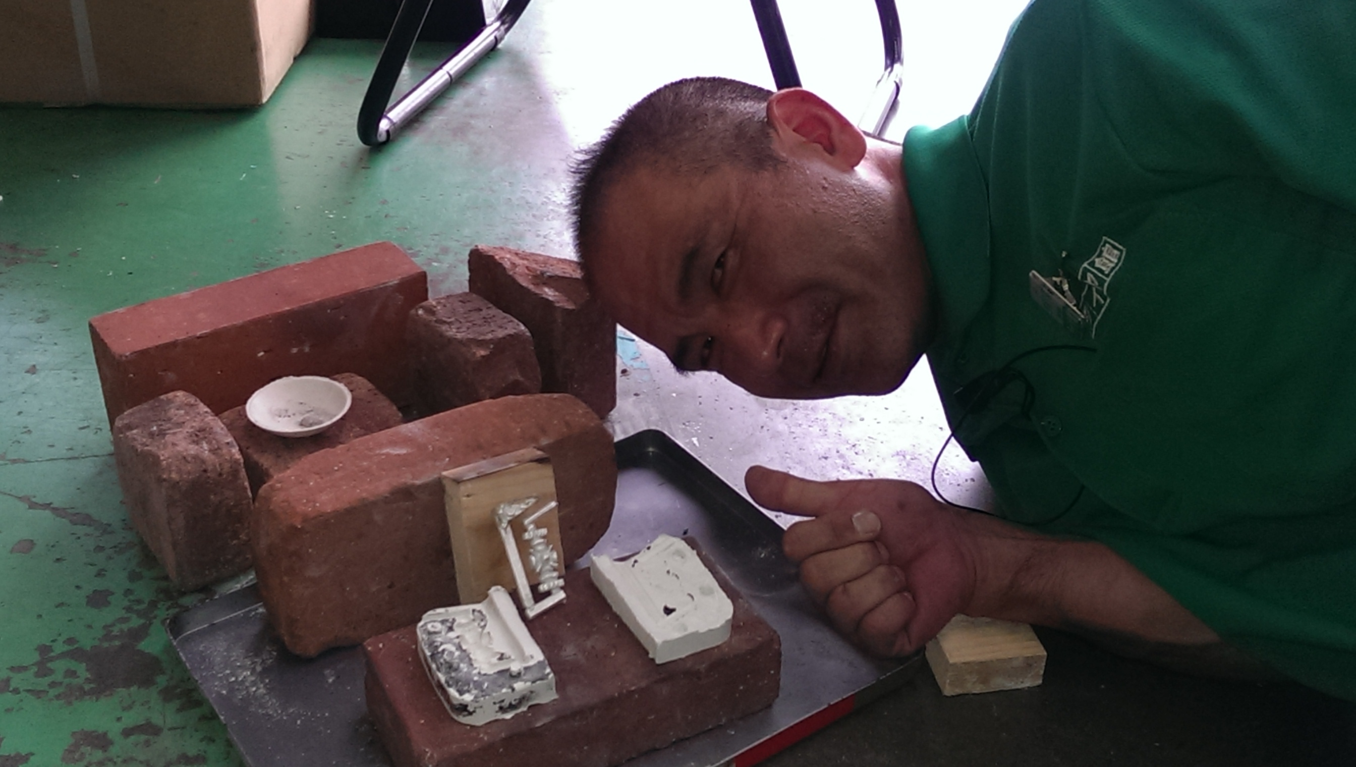 お手製かまどでなにやら鉄を熱していたご様子ですemoji