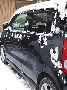 久しぶりに雪らしい雪が降りましたね家の前も車もすっかり雪化粧って感じでした